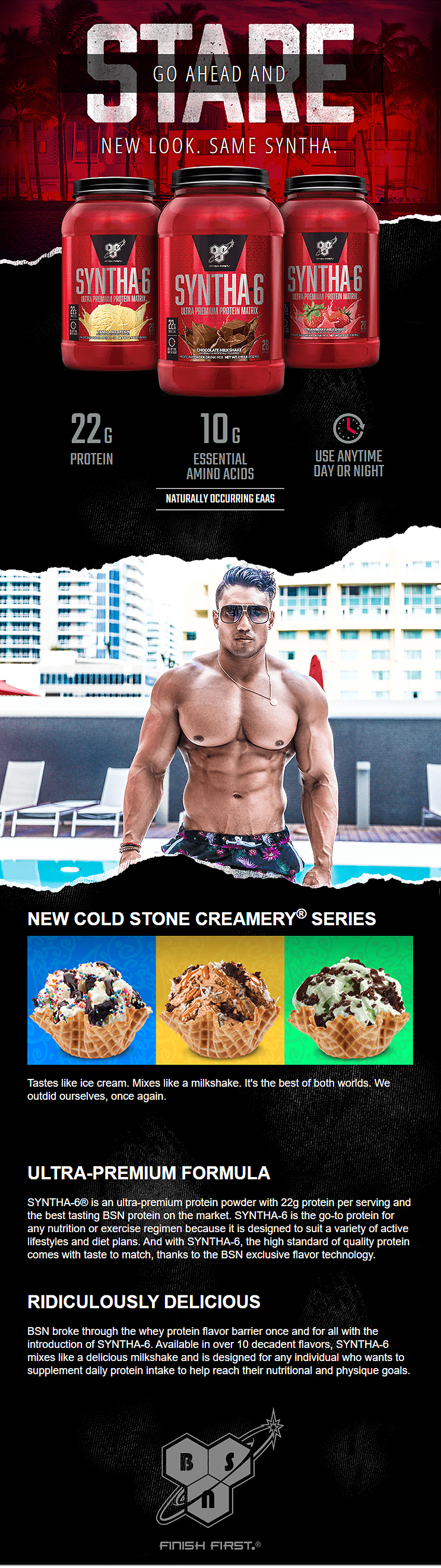 Syntha-6™ is the ultra-premium protein with an ultra-premium taste. Our multi-functional protein blend utilizes multiple individual proteins, each with varying digestive rates and distinct amino acid profiles. This combination ensures active muscles are fed for hours with the most complete blend of proteins available. To enhance this ultra-premium blend, Syntha-6™ has been fortified with BCAAs, muscle-sparing glutamine peptides, A²ZORB™ for greater digestion and heart-healthy MCTs and essential fatty acids. Last but certainly not least, each serving of Syntha-6™ provides you with 5 grams of fiber for slower digestion and increased nutrient uptake. Not only does Syntha-6™ produce mouthwatering shakes, which can only be described as "ridiculously delicious," it provides you a healthy meal, perfect for rigorous training schedules and hectic lifestyles. Highlights