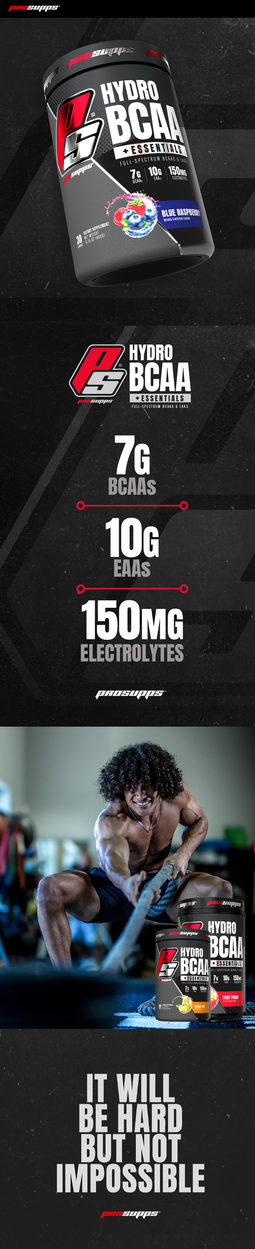 If you’re looking for a great tasting amino acid supplement to enhance your stack, while supporting your efforts to stay hydrated, ProSupps® HydroBCAA® +Essentials is for you. Formulated with 7g of a 2:1:1 BCAA ratio, 10g of EAAs and a 150mg electrolyte matrix, HydroBCAA® +Essentials helps promote enhanced recovery, increased training endurance, and supports lean muscle and proper hydration. Perfect for anyone looking to enhance their training and recovery. Don’t just push the envelope — Rip it wide open.† |